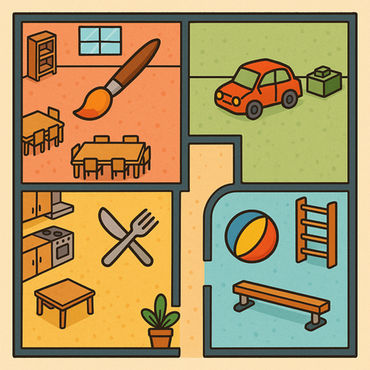 Sobald ein Kind die erforderliche Entwicklungsreife erreicht hat und Interesse an neuen, größeren Herausforderungen zeigt, erfolgt der Übergang in die größere Einrichtung. Dort wird das offene Konzept in besonderem Maße erlebbar, da die Einrichtung aus vier Gruppen besteht und den Kindern den Zugang zu vielfältigen Funktionsräumen bietet. Diese Räume sind so gestaltet, dass sie individuelle Impulse setzen und die Kinder dazu anregen, ihre Aktivitäten eigenständig und nach ihren persönlichen Interessen zu gestalten. Durch diese strukturierte Umgebung fördern wir die Selbstständigkeit, die Entdeckerfreude und die ganzheitliche Entwicklung der Kinder in einem anregenden und vielfältigen Umfeld.